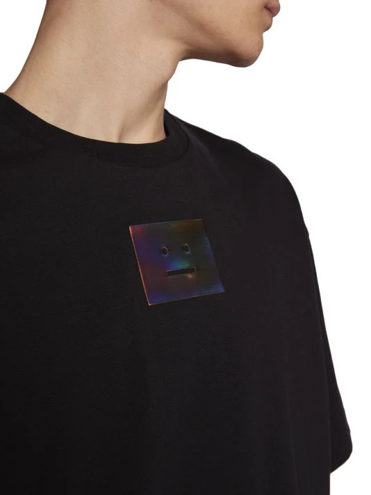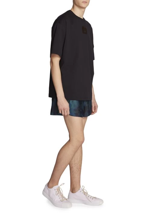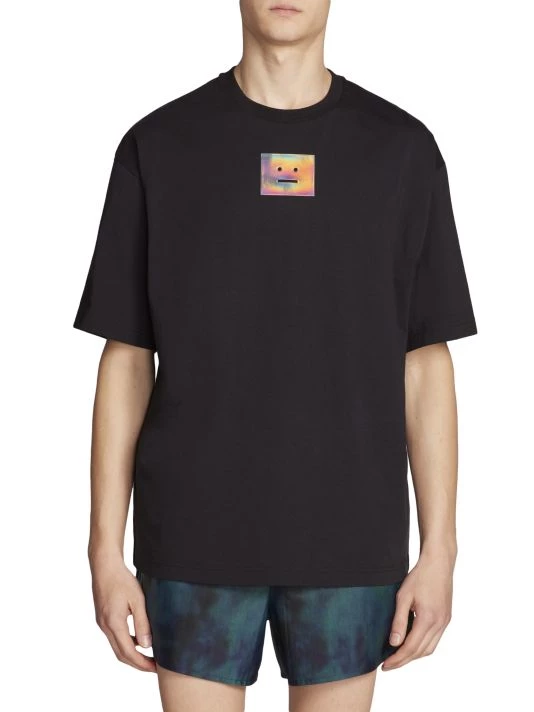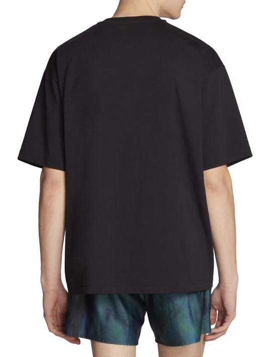 This relaxed-fit drop-shoulder T-shirt is adorned with an oil spill-inspired logo on the chest.