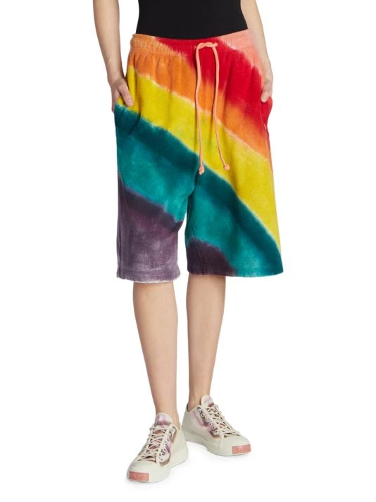 From the Face Collection. Acne Studio’s Flack Rainbow shorts feature a comfortable drawstring waist and dyed stripe pattern.