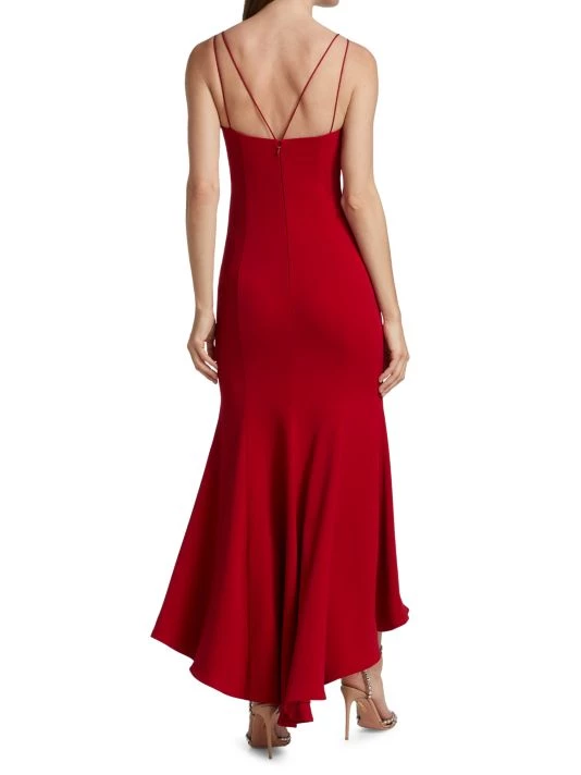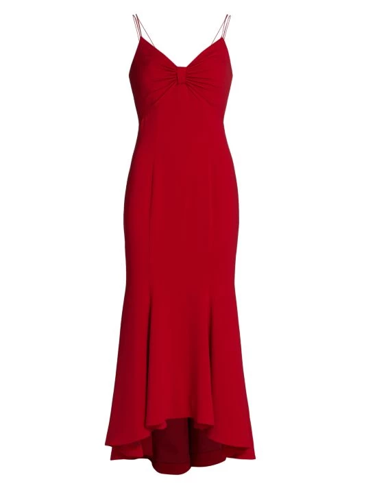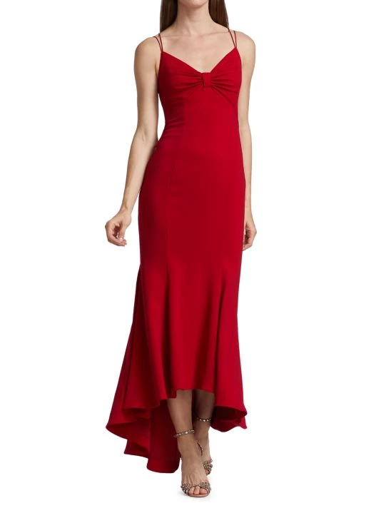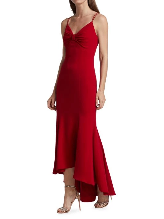 A gathered bust and asymmetric hemline elevate this classic slip dress.