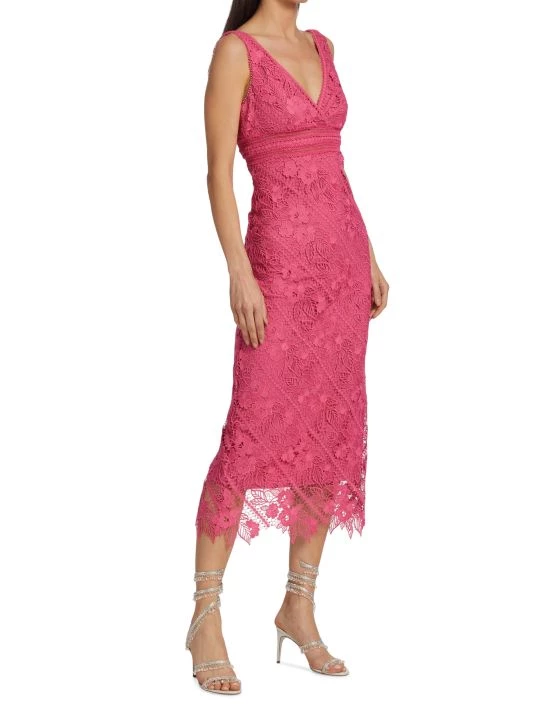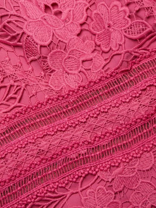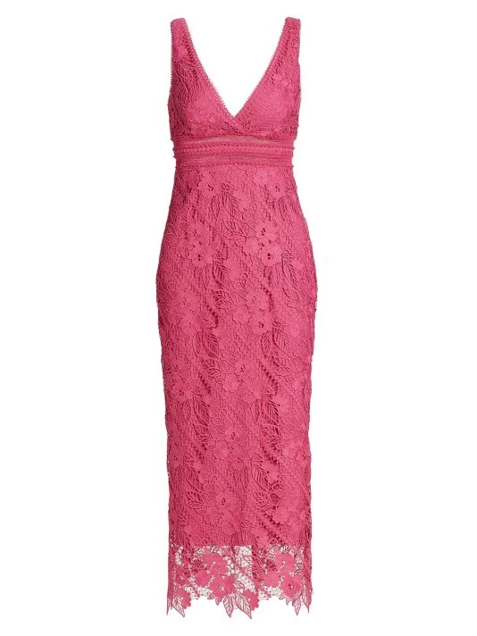 Bright floral guipure lace updates this sheath dress, cut with a slim fit to the mid-calf.