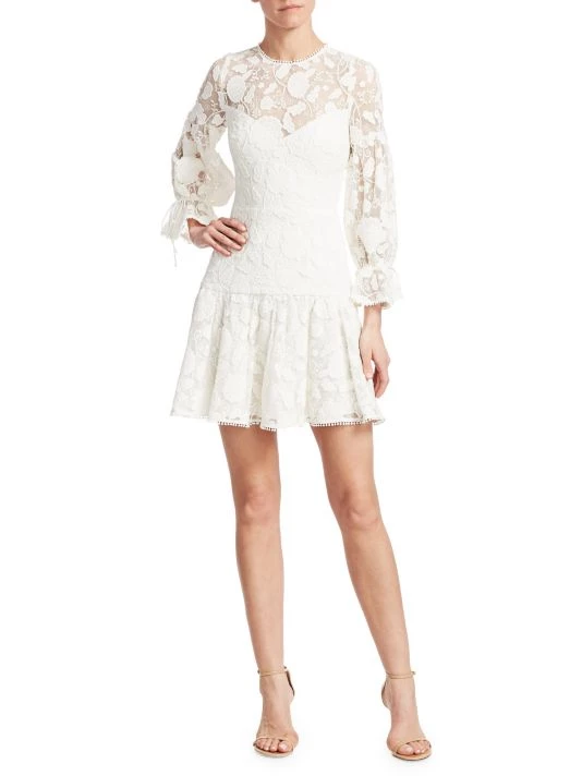 ONLY AT SAKS.Dainty mesh cocktail dress with sweet floral lace embroidery.