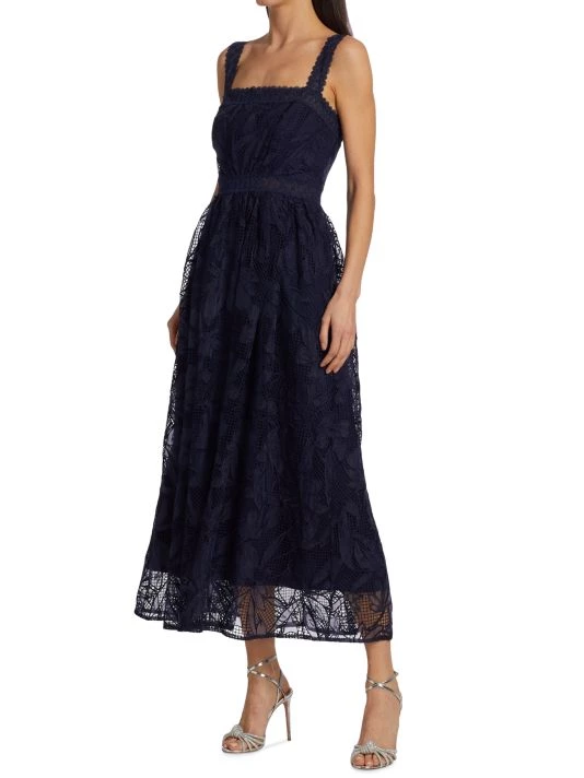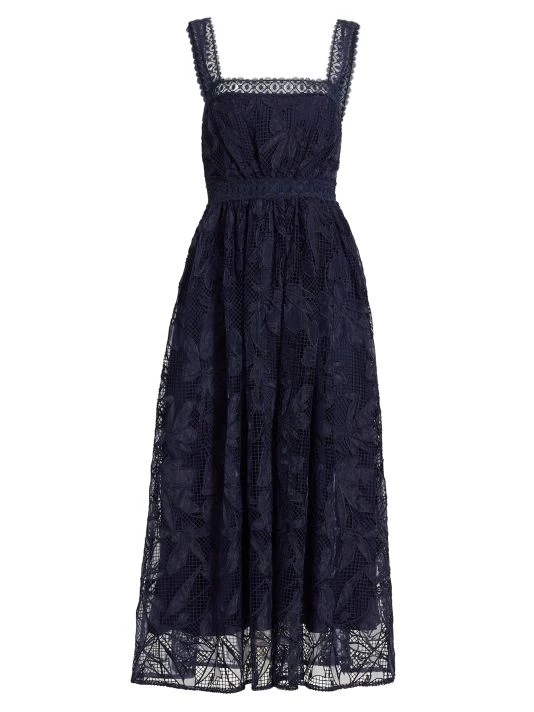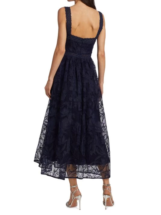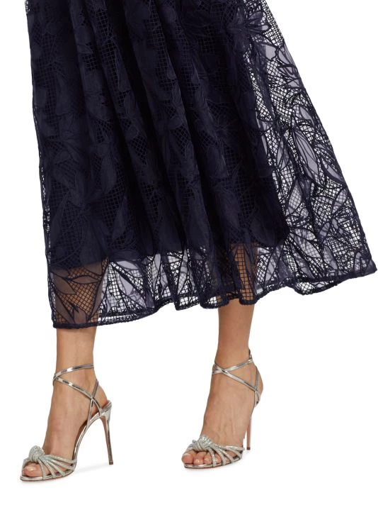 Perforated floral lace elevates this fit-&-flare dress, designed with a refined, feminine look.