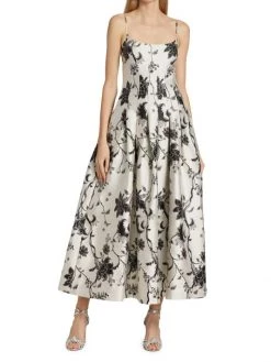 ML Monique Lhuillier One-Shoulder Organza Jacquard Cocktail Dress