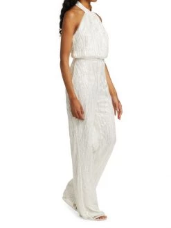 ML Monique Lhuillier Sequined Halterneck Jumpsuit